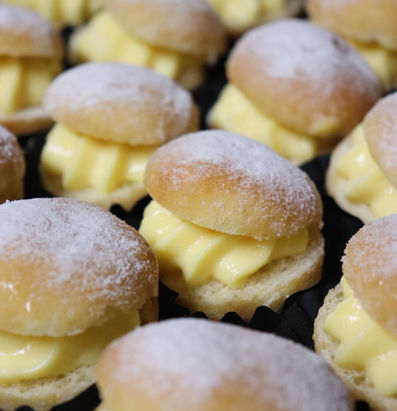 Mini rolbiscuit met botercrème (citroen/chocolade/javanais/rood fruit/bresilienne-mokka)
